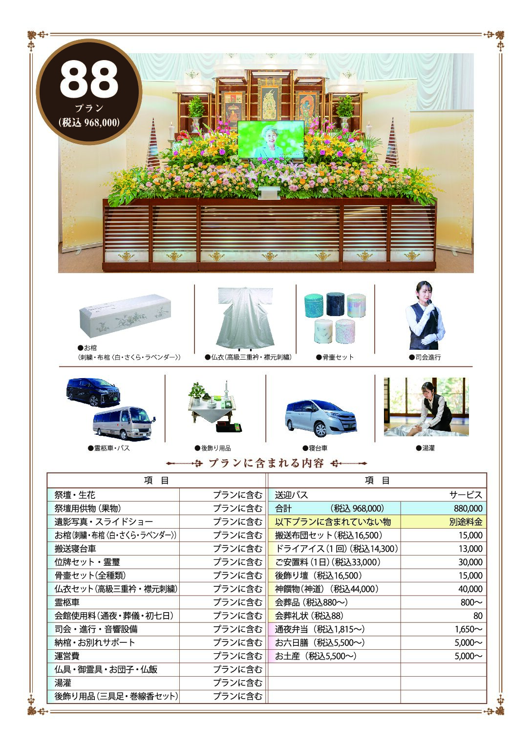【本館式場】オリジナル生花祭壇とオリジナル映像で想い出に浸る特別な家族葬プラン各種